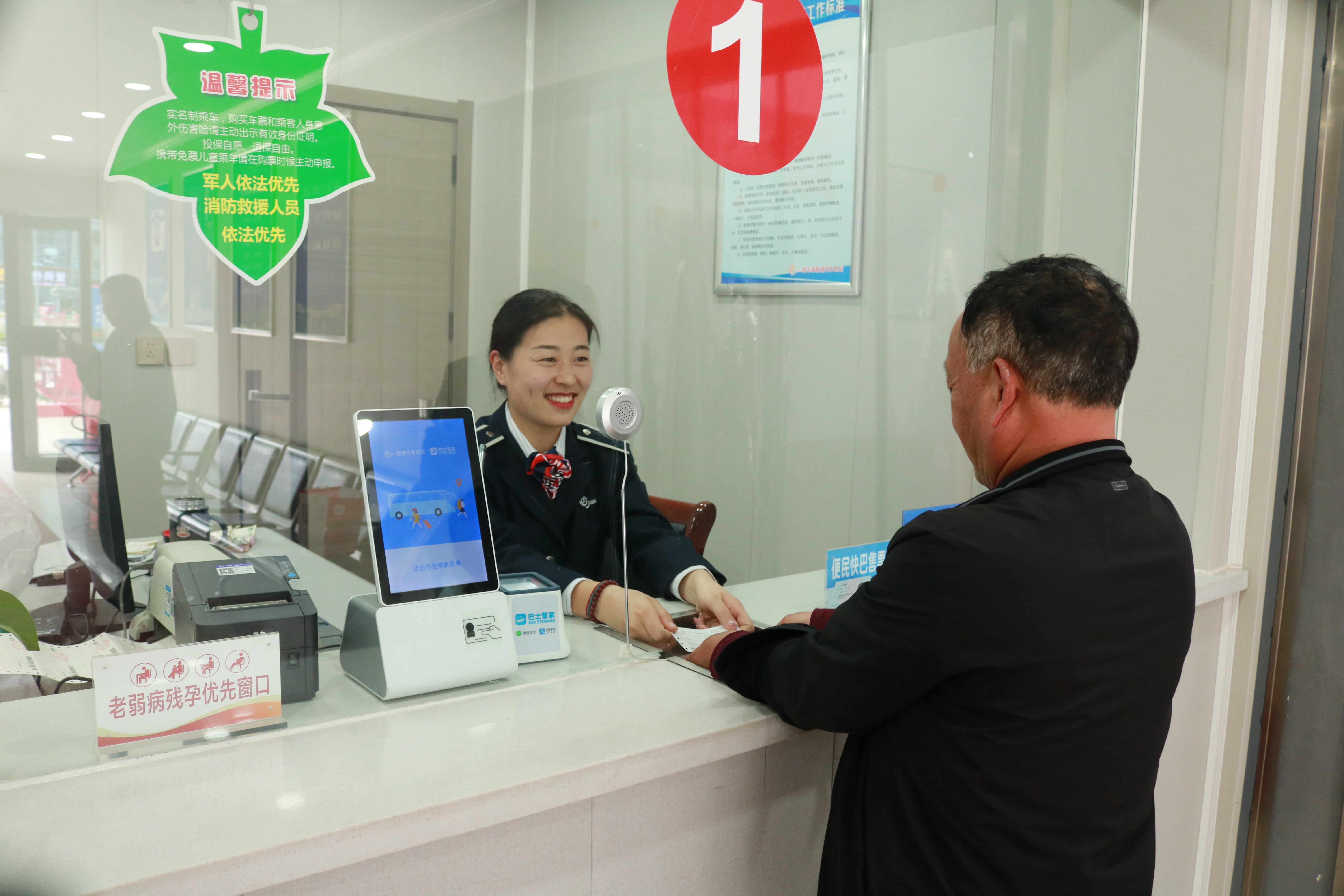 三、优化服务供给,提升旅客出行体验。针对假期出行特点,公司科学调配运力资源,计划投入运力160台,机动运力20台,通过开通景区直通车、校园定制专线、“与雷锋车同行·便民快巴”专线等特色线路,精准对接旅游、探亲、返校等多元需求,全力保障市民出行。公司各客运场站通过自助购票机、电子导引屏,大力推广“线上购票+无纸化乘车”服务。候车大厅内为乘客提供充电驿站、无障碍通道等便民设施,还安排工作人员和志愿者为老弱病残孕等特殊群体提供“一对一”全程帮扶服务,从细节处提升服务温度。