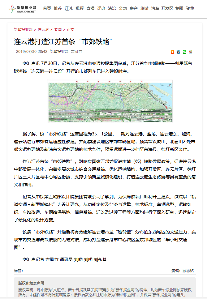 江苏首条市域铁路——利用既有陇海线“连云港—连云段”开行的市域列车已进入建设时序。