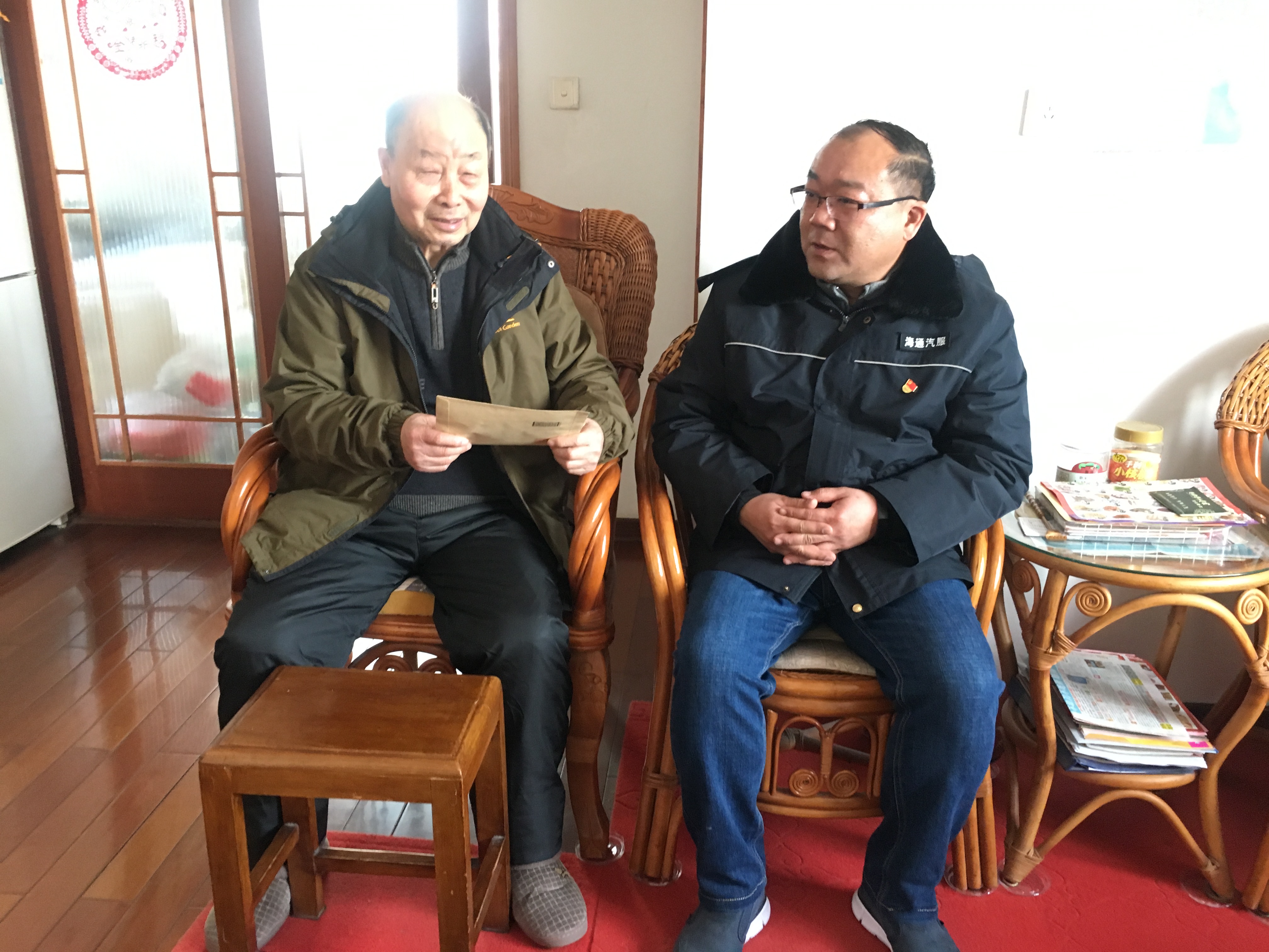 1月20日上午,汽车销售事业部党支部书记罗权与办公室相关工作人员一行,先后入户看望慰问了离休干部玄雨贵、王建廷,军转干部穆忠芝,向老干部们送去节日的问候和诚挚的祝福。