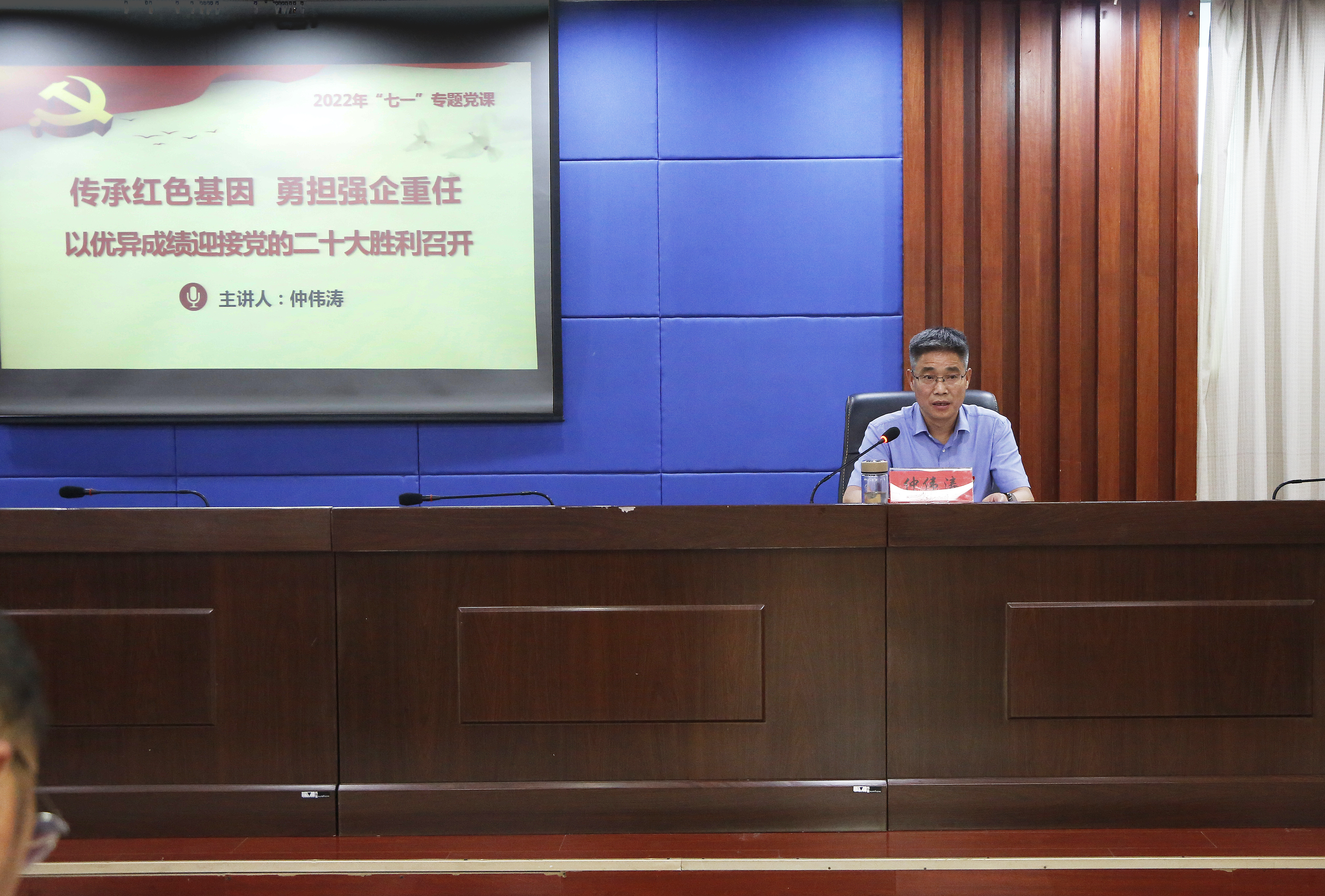 6月28日上午,博鱼app最新版下载,博鱼(中国)召开2022年“七一”表彰大会,表彰一批“雷锋车”组式先进党支部、“雷锋车”手式优秀共产党员和优秀党务工作者,博鱼app最新版下载,博鱼(中国)总经理、党委副书记、副董事长仲伟涛作“七一”专题党课。博鱼app最新版下载,博鱼(中国)在家领导班子成员,派驻纪检组领导,各部门主要负责人,各单位党政主要负责人以及受表彰的先进集体和优秀个人代表60余人参加会议。会议由博鱼app最新版下载,博鱼(中国)党委副书记、工会主席陈金师主持。
