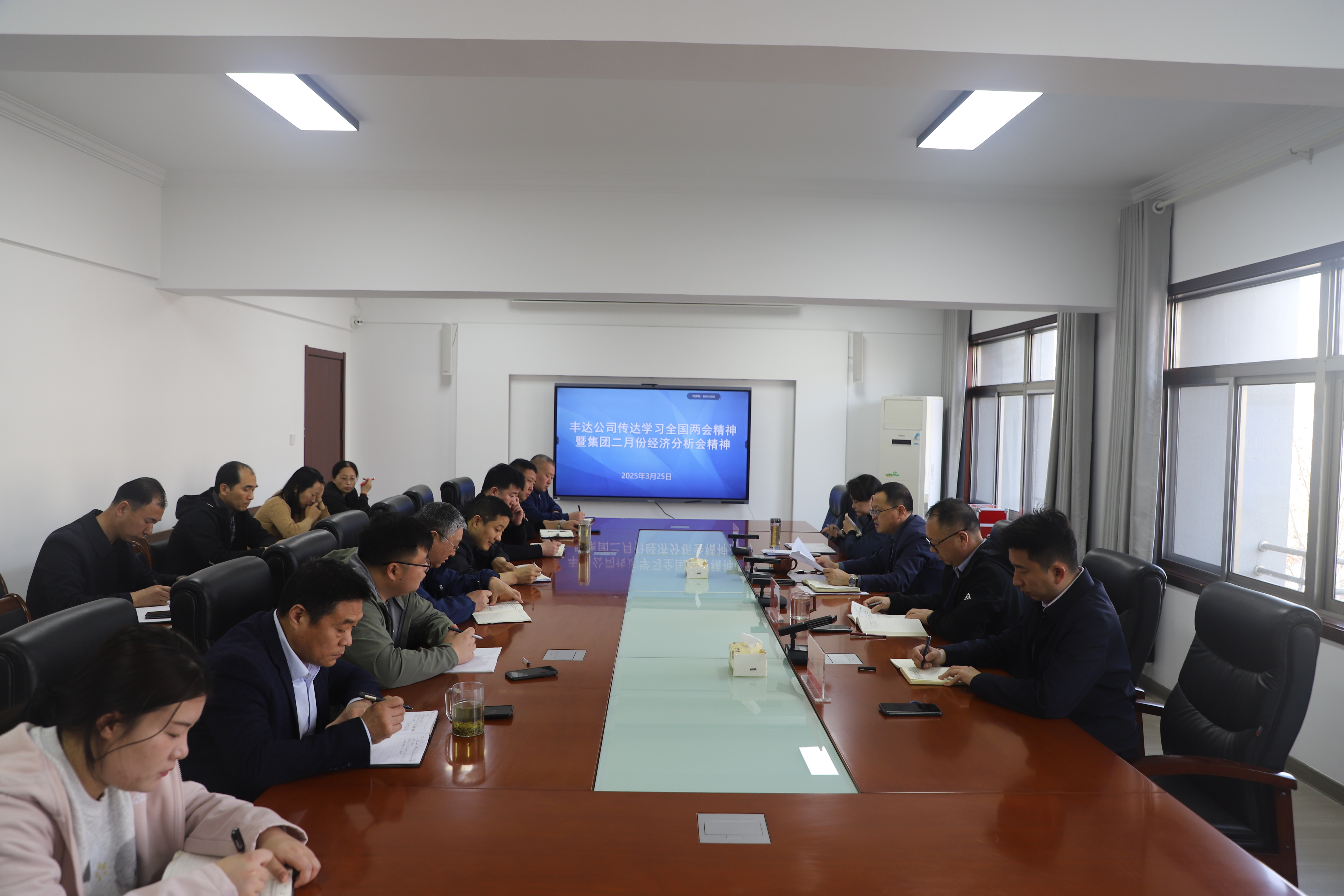 3月25日上午,丰达公司召开学习宣传贯彻全国“两会”精神和传达博鱼app最新版下载,博鱼(中国)二月份经济运行分析会精神会议,丰达公司领导班子成员、各单位负责人、各部门负责人共计15人参加会议,会议由公司党总支书记、董事长王梁洲主持。