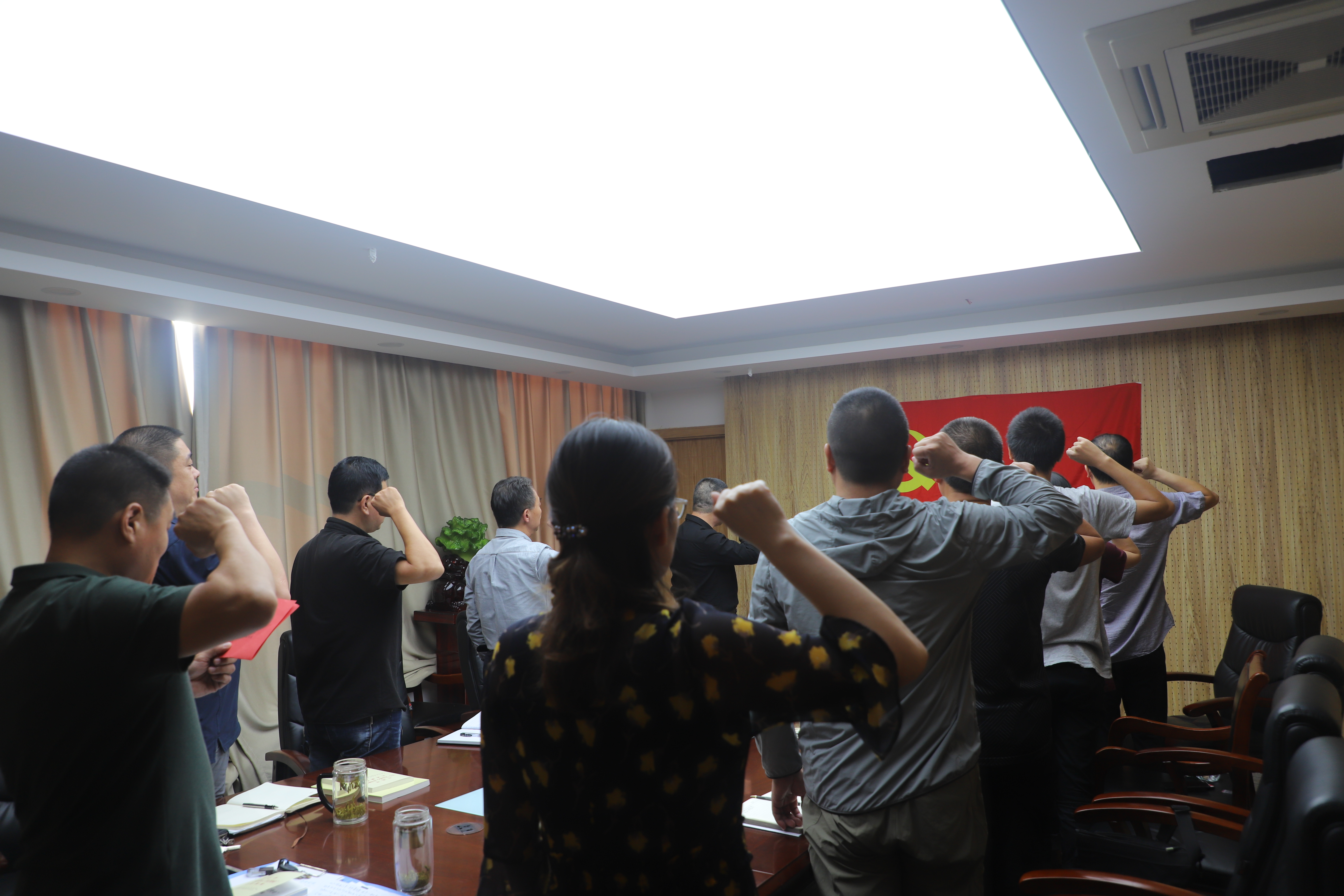 开始讨论前,全体党员紧握右拳,面向党旗,重温了入党誓词。公司领导班子成员以普通党员的身份参加了讨论,和其他党员一起,进行了交流发言。所有党员深情回忆了工作之初的珍贵记忆、入党之初的难忘时刻、为官之初的激动心情,再次唤起了大家对党的忠诚、对工作的激情和为官的责任意识,增强了大家守初心、担使命、找差距、抓落实的政治自觉、行动自觉和思想自觉。