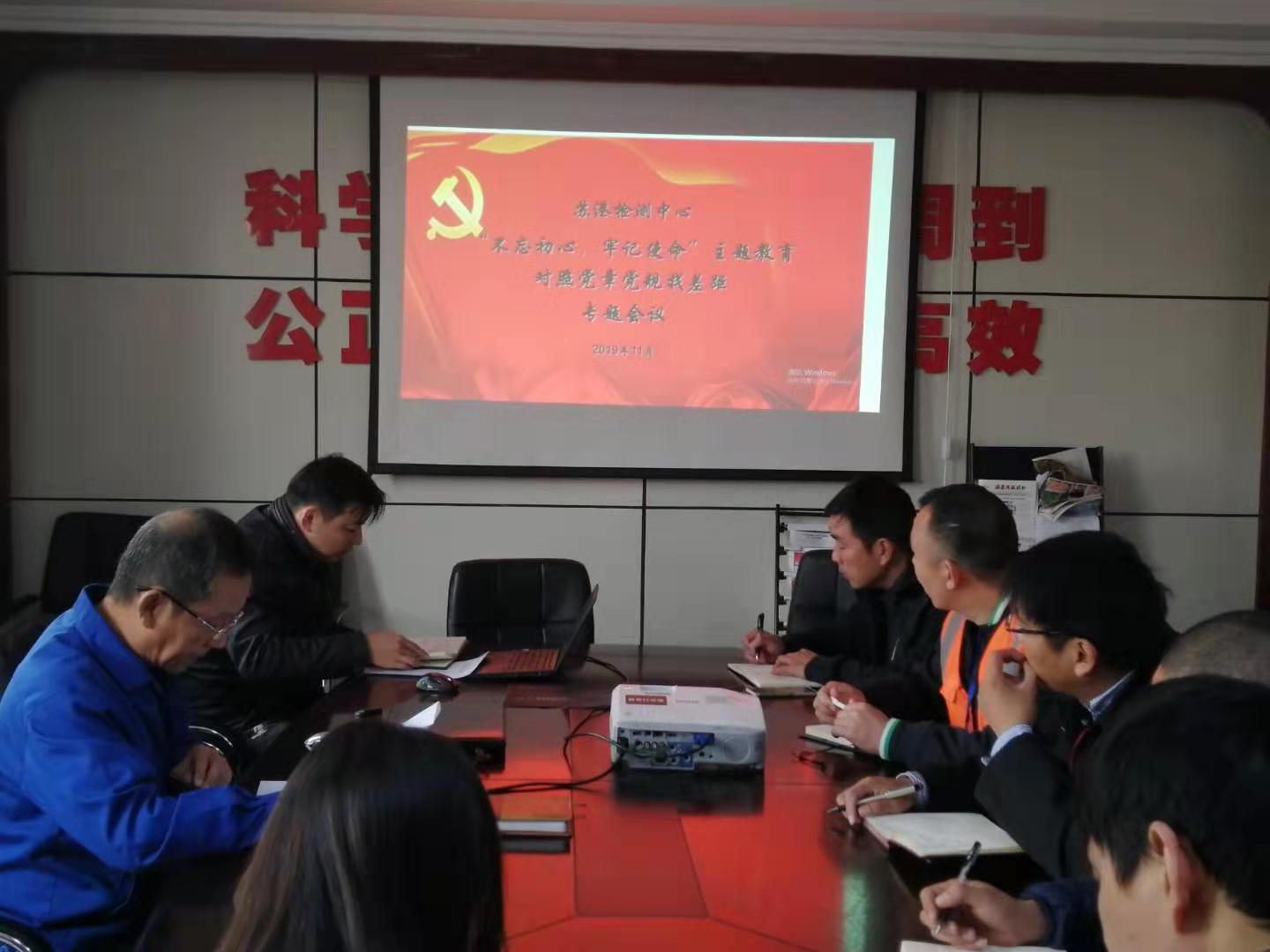 根据博鱼app最新版下载,博鱼(中国)党委和公司党委“不忘初心、牢记使命”主题教育工作部署安排,11月12日上午,苏港检测党支部召开对照党章党规找差距专题会议,全体党员参加会议,党支部书记于俊洋主持会议。