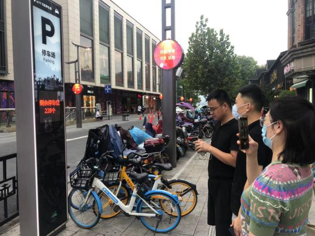 朱晓雯一行先后考察了杭州市上城区核心路段建设的一级、二级和三级停车诱导屏,在现场听取了杭州市智慧停车项目相关人员的详细介绍,并详细咨询了诱导屏建设的位置选取、功能应用和样式类别等相关问题。