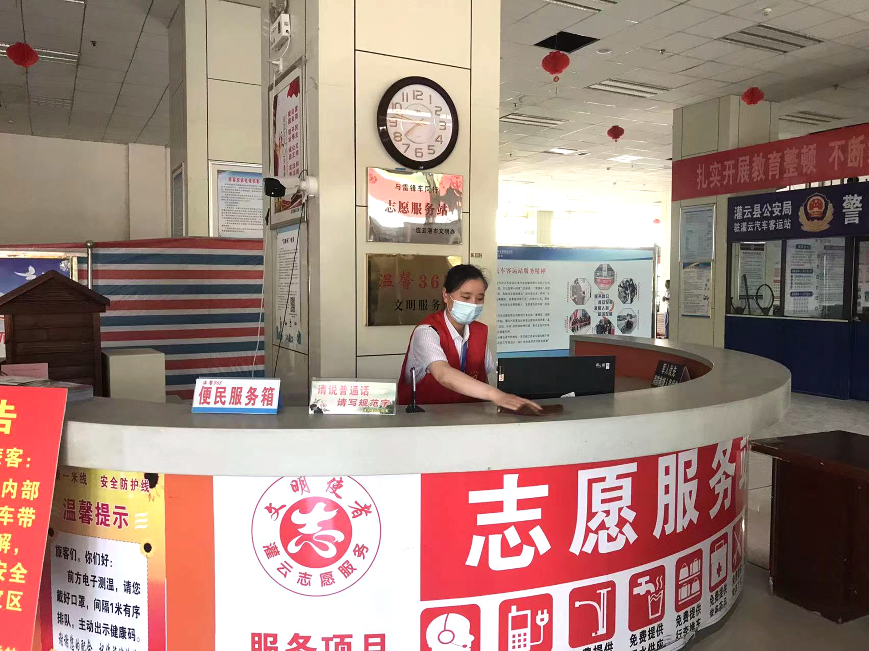 为了大力弘扬“雷锋”精神,连汽灌云长途汽车客运站于2016年5月成立了以党、团员为主的灌云汽车客运站志愿服务队,以新浦汽车总站“雷锋车”组先进典型为榜样,以“温馨365”示范岗为载体,牢记职责和使命,弘扬“奉献、友爱、互助、进步”的志愿精神,用实实在在的服务将爱心传递,为城市文明创建、市民平安出行活动提供志愿服务。