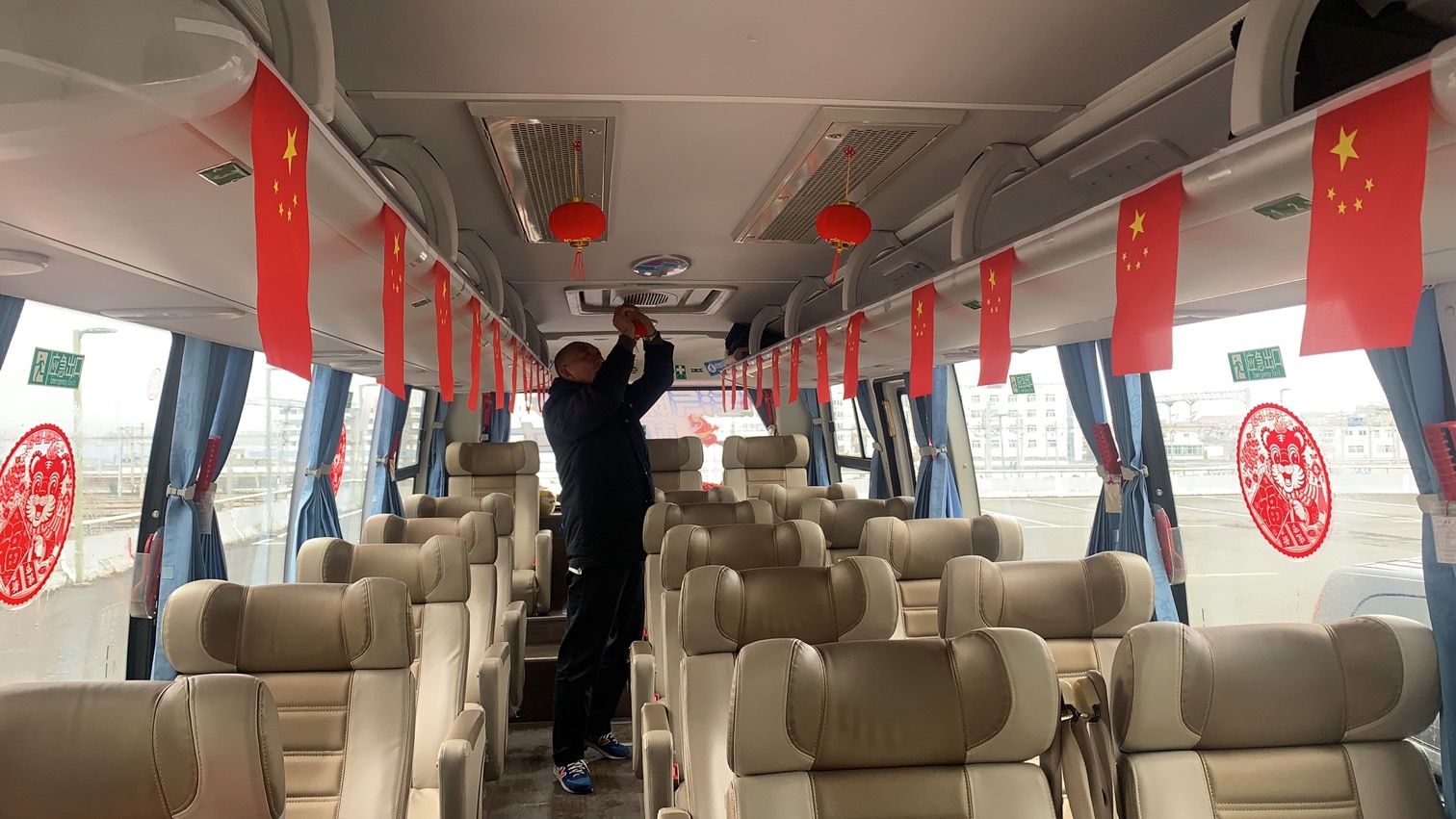 活动中,客运事业部在车厢内挂起了灯笼和国旗,在车窗上张贴了过年传统的窗花,渲染车厢内春节气氛,让广大旅客身在途中也能深深地感受到浓烈的年味,也寄托着辞旧迎新、接福纳祥的美好愿望。职工们对办公及生产区域的卫生进行了全面打扫,以崭新的面貌迎接新年的到来,并在办公场所走廊、修理车间、车队门前,高高挂起红红的灯笼。职工们在各自岗位上踊跃拍摄拜年视频表达自己的喜悦之情。喜庆的氛围让职工热血澎湃,一种团结情怀油然而生,对企业产生强烈的归属感。