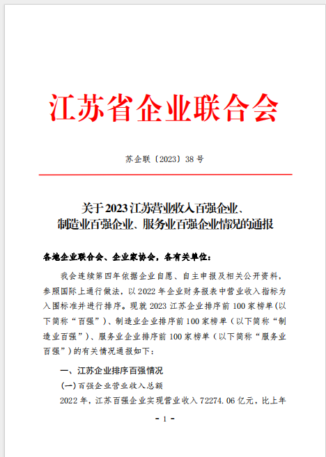 近日,江苏省企业联合会发布2023江苏百强企业、制造业百强企业和服务业百强企业名单。制造业百强榜单连云港市镔鑫钢铁、亚新钢铁、新海石化、兴鑫钢铁、正大天晴、恒瑞医药、江苏核电、豪森药业8家企业入选制造业百强榜单;镔鑫钢铁、亚新钢铁、新海石化、兴鑫钢铁同时入选百强企业榜单;港口控股博鱼app最新版下载,博鱼(中国)、交通控股博鱼app最新版下载,博鱼(中国)入选服务业百强榜单。