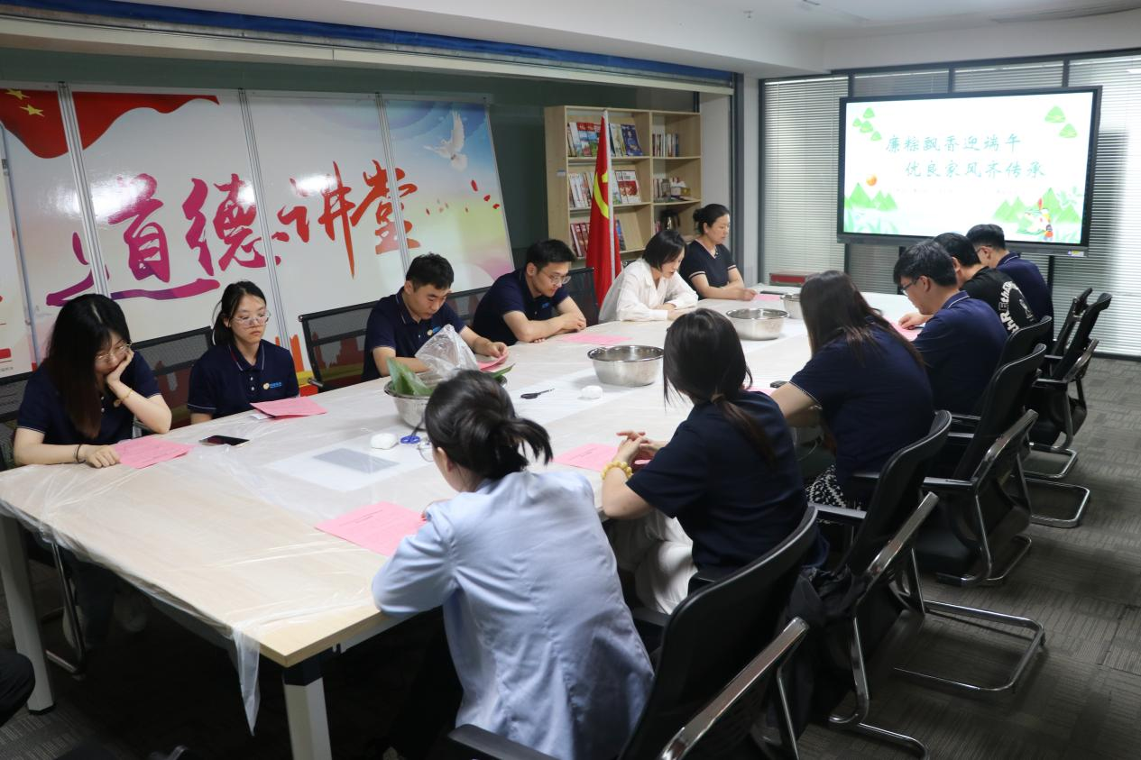 活动伊始,由党总支纪检委员马一骄带领党员干部们学习习近平总书记关于注重家庭家教家风建设的重要论述,集体观看纪录片《周恩来的家风家规》,接着,大家围在一起,叶、泡米、填馅、扎绳,共包廉心粽。活动现场弥漫着粽叶香,其乐融融,共同体验传统文化的魅力。清香的粽叶、晶莹的糯米在大家手中飞舞飘香,一颗颗形态各异、饱含祝福的粽子呈现在眼前,这些粽子不仅凝聚着大家的劳动成果,更承载着对传统节日的敬意和对彼此的美好祝福。