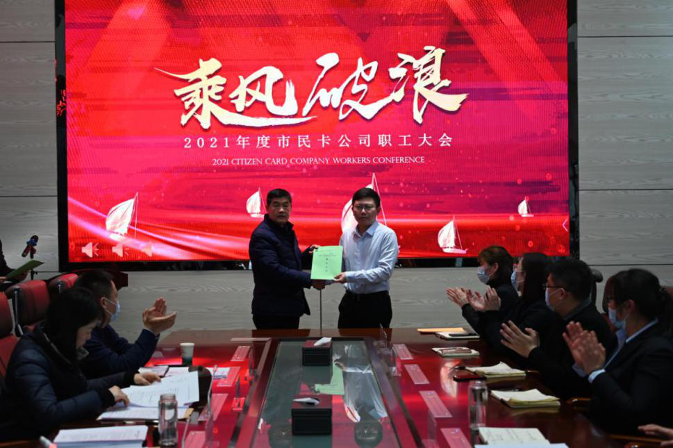 会议审议通过了《2020年度工作报告》、《2020年度工会工作报告》、《财务预算报告》,工会主席曹新军向公司总经理周巍巍递交了市民卡公司《集体合同》、《工资专项集体合同》、《女职工特殊保护专项集体合同》《劳动安全卫生专项协议书》。