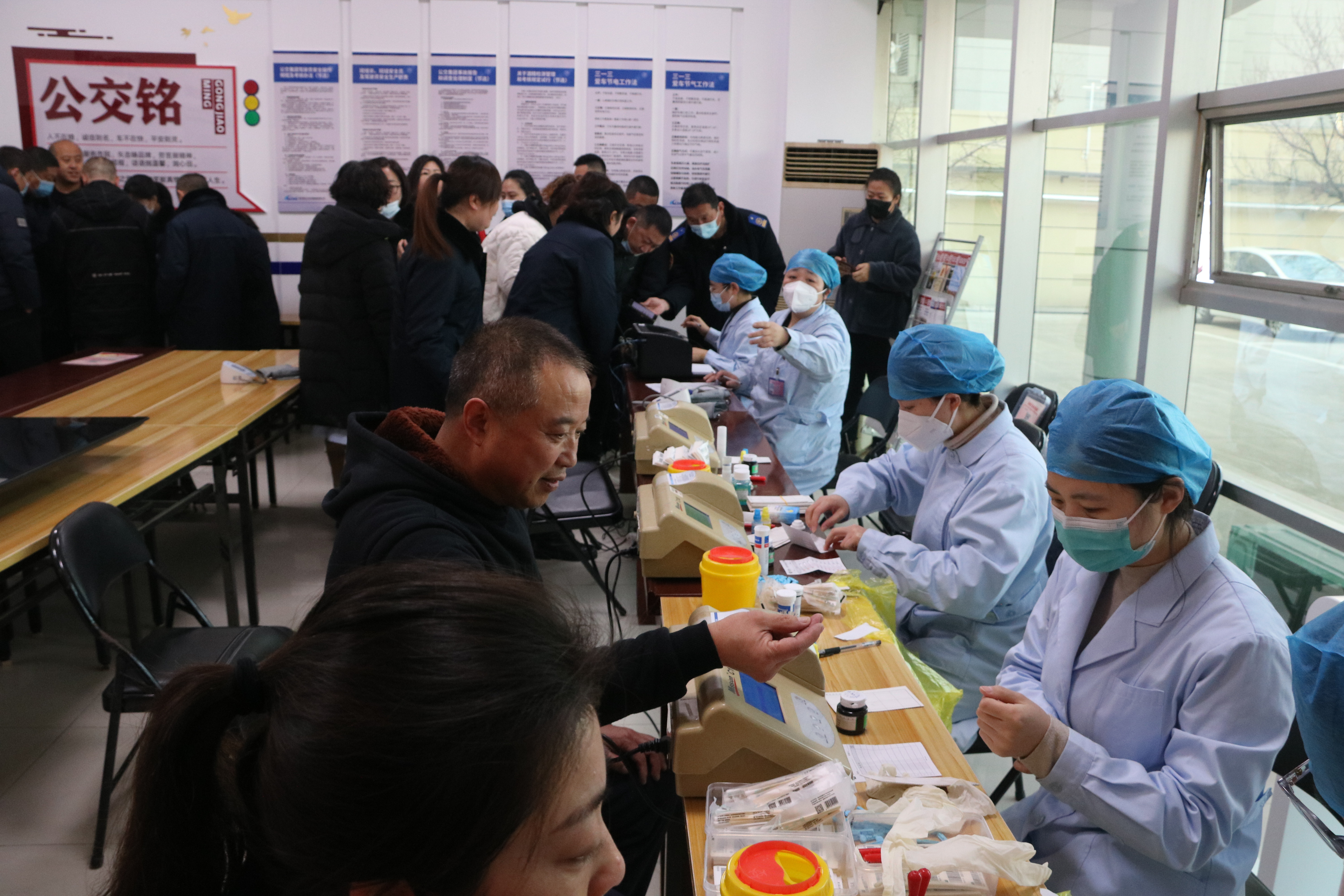 在新华公交总站,连云港公交先锋志愿服务队志愿者们积极配合血站医护人员的工作安排,做好健康状况登记表填写、血压测量、血液初检、信息录入等工作,符合献血条件的同志在流动献血车内有序进行采血。党员干部以身作则、带头报名,并自愿当起无偿献血宣传员,向其他同志普及献血知识,引导带动身边更多人参与进来。参与本次无偿献血活动的报名人数达百余人,累计献血量约10000毫升,大家用实际行动诠释了奉献之心、践行雷锋精神。